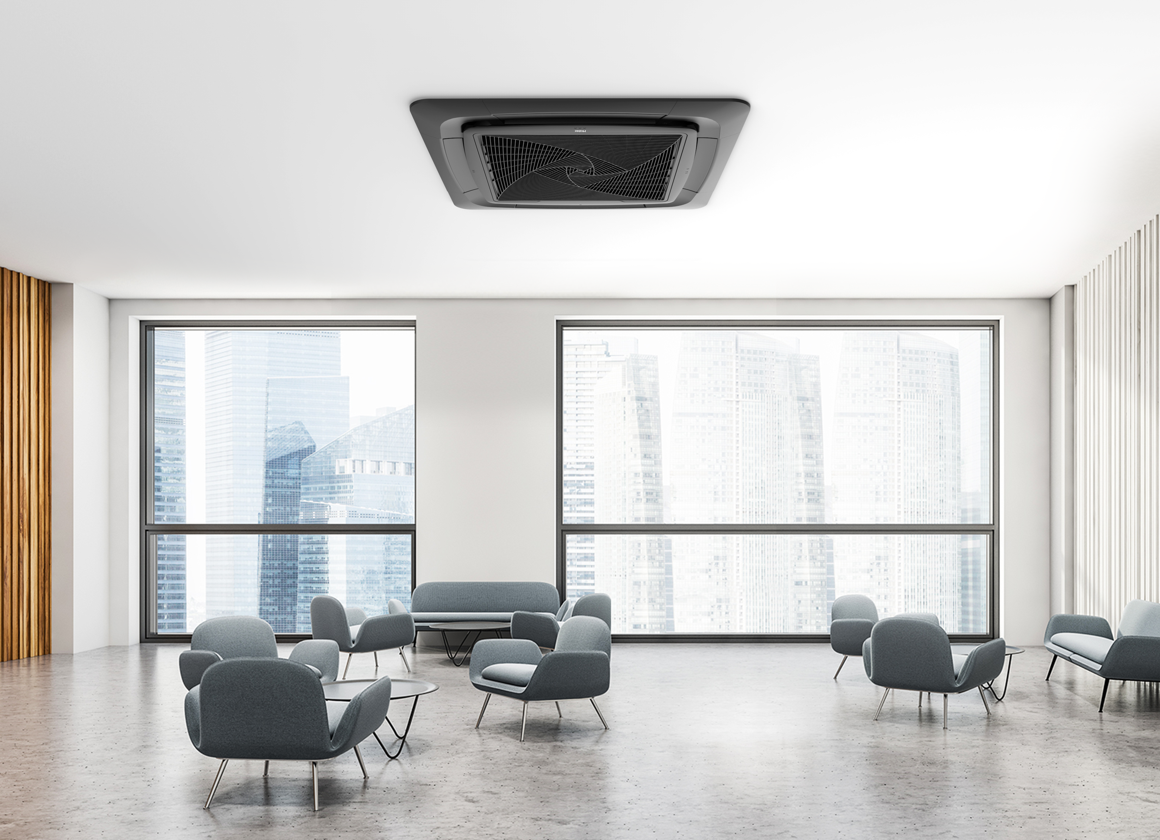 Die neue Haier Round Flow Kassette ist für Multisplit-Anwendungen (5:1) erhältlich. Die Round Flow Kassette bietet einen sehr niedrigen Geräuschpegel und sorgt für Komfort und frische Luft. Die vergrößerte Oberfläche des neuen Gitters sorgt für eine bessere Luftverteilung (+23 %) im Vergleich zu herkömmlichen Modellen. Dank eines 8-Wege-Luftstroms ist es möglich, einen 360-Grad-Luftstrom ohne tote Winkel zu gewährleisten. Die Reihe ist in der Größe 7,1 kW erhältlich.