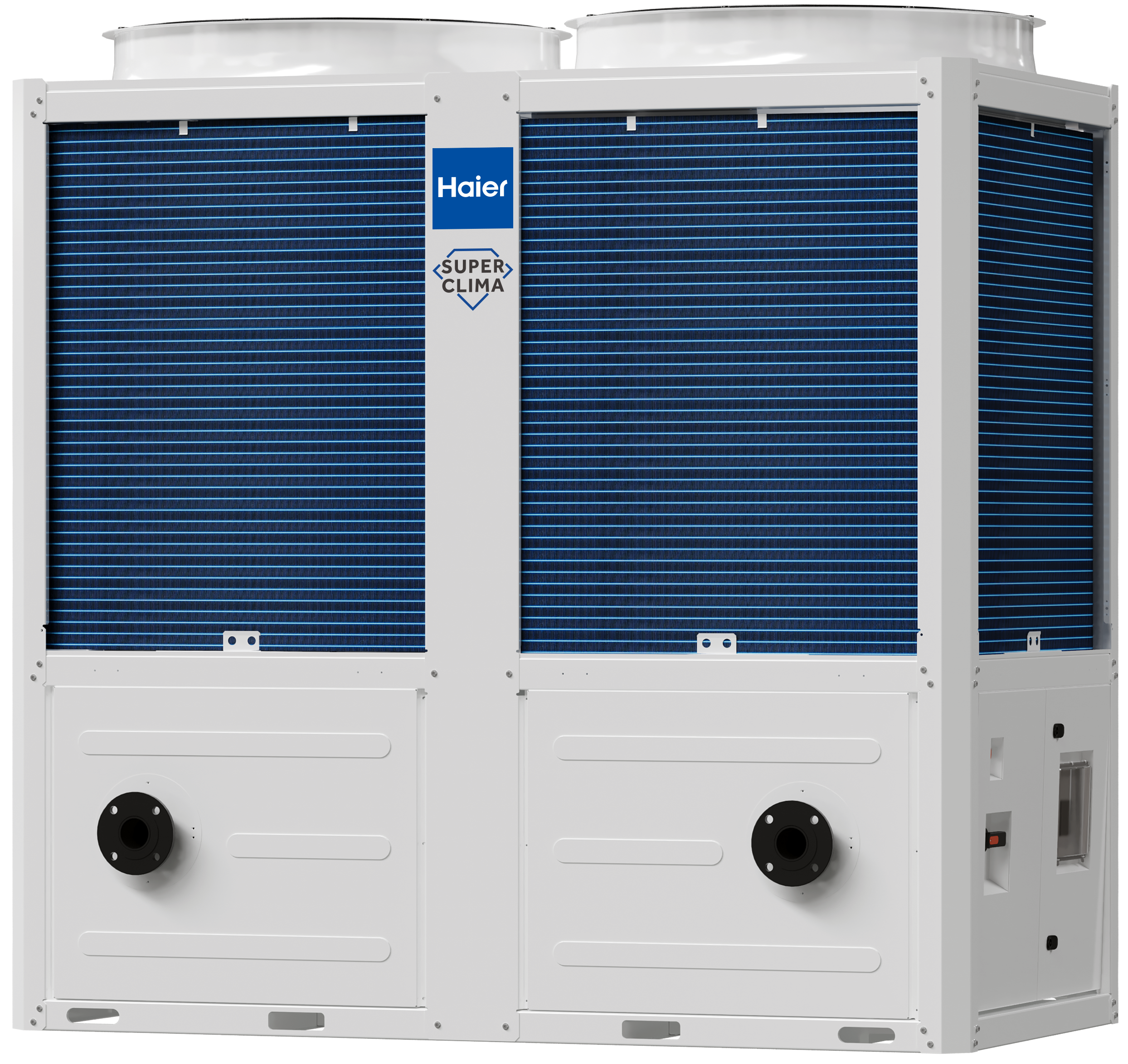 La gama de Enfriadoras Modulares Haier consta de 3 modelos de distinta potencia para sus demandas de refrigeración y calefacción con tecnología de compresor Scroll Inverter. Estos módulos están diseñados para instalaciones únicas ""enchufables"" y para múltiples configuraciones modulares según los requisitos de la aplicación. Todas las unidades pueden dar refrigeración entre -15 y +50ºC y calefacción -25 a +50ºC. Se pueden acoplar hasta 16 enfriadoras modulares Haier de cualquier capacidad bajo un solo controlador para llegar a los 2080 kW de capacidad. La sencillez de construcción y la configuración racional con las distintas protecciones preinstaladas hacen que estos modelos sean fiables y económicos de gestionar. Además, todos vienen con Modbus de serie para una conexión BMS. Los ventiladores DC tienen un diámetro de 1000 mm y están impulsados directamente por un motor eficiente; este diseño patentado por Haier reduce en gran medida el consumo de energía y al mismo tiempo reduce los niveles de ruido. El economizador dentro de la unidad adopta un intercambiador de calor de placas para lograr un subenfriamiento secundario, mejorando el rendimiento y la eficiencia. Equipada con refrigerante R32, con GWP de 675.