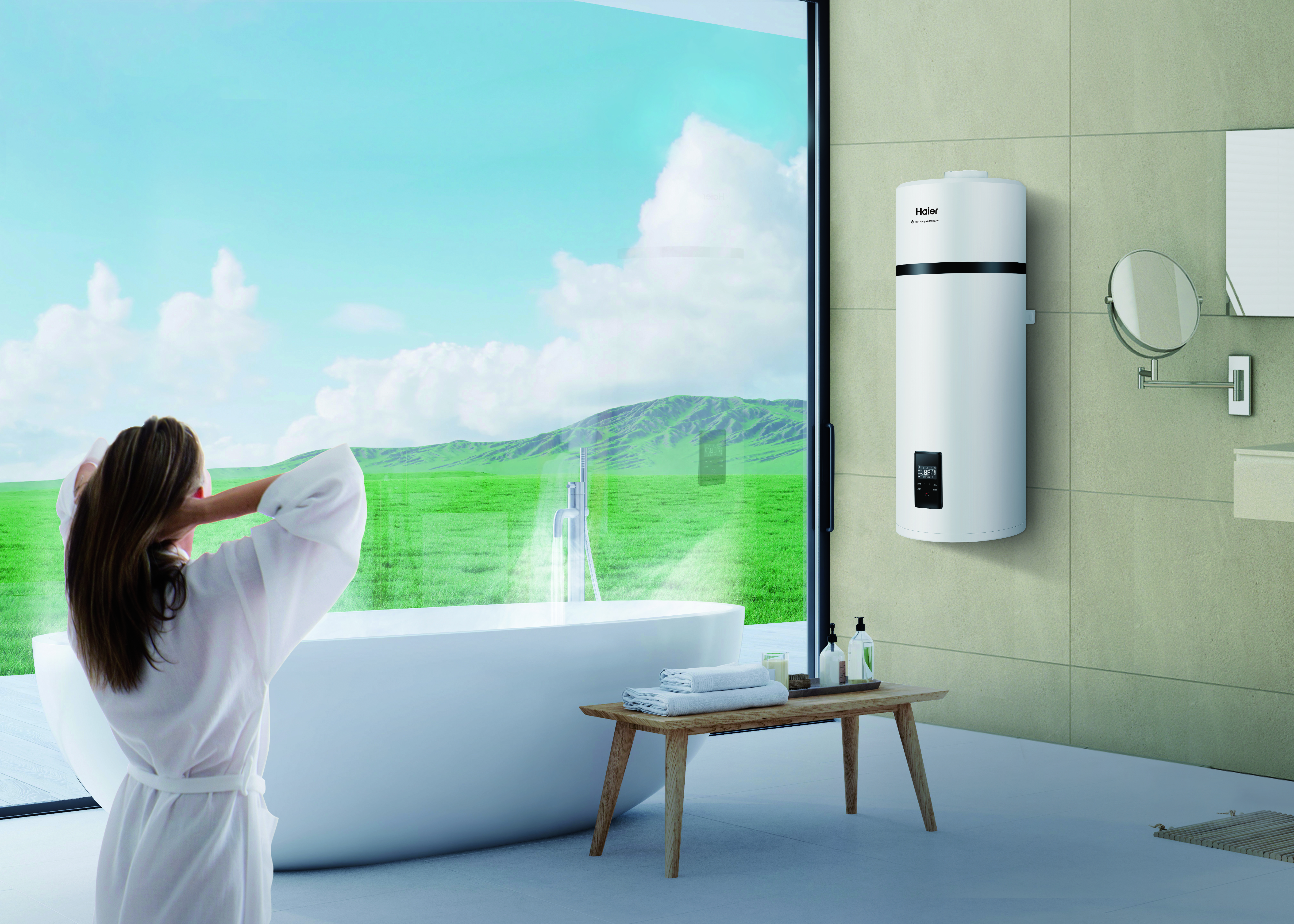 La gamme de chauffe-eau thermodynamique Haier M5, fonctionnant au R134a et contrairement à un chauffe-eau traditionnel, fournit de l'eau chaude en utilisant la chaleur de l'air, réduisant ainsi la consommation d'énergie et offrant une plage énergétique A+. Le M5 est disponible en trois tailles de réservoir différentes : 80L, 102L et 149L. Doté de fonctionnalités haut de gamme telles qu'un condenseur à micro canaux, des modes de chauffage rapide et d'alimentation Éco, ce monobloc mural a un design fin, ce qui le rend facile à installer n'importe où, même dans les petites pièces.