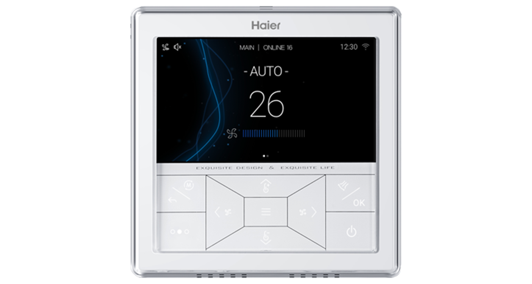 Mando conectado a la corriente eléctrica con pantalla táctil y a color. Compatible con gama Residencial (todas estas necesitan interfaz WK-B), Supermatch y MRV. Diseñado para controlar hasta 16 unidades interiores con capacidad de generar una programación semanal de estas.