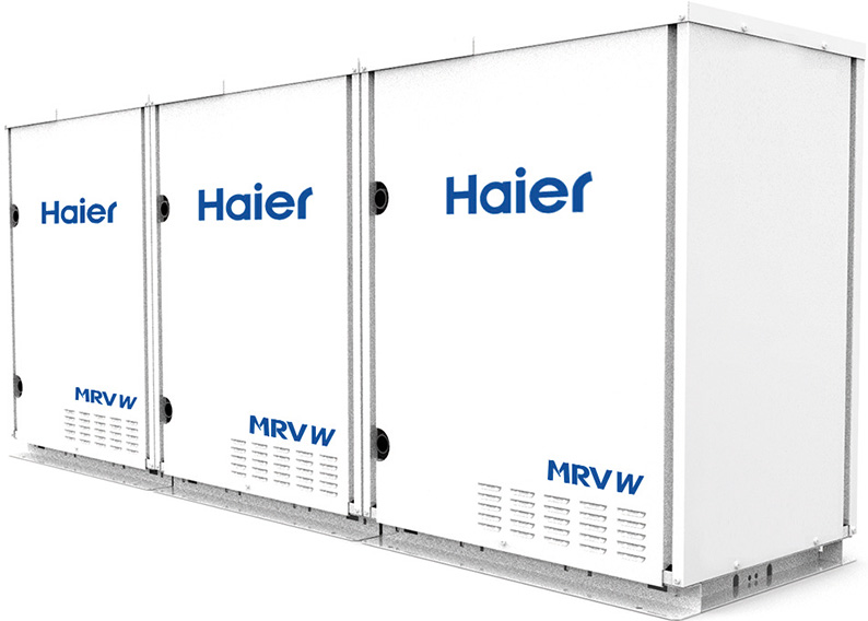Haier MRV W unit is a Heat Pump System Full DC Inverter. It is a direct expansion system that combines the efficiency of the VRF technology with the use of water from a variety of sources. This range offers a wide range of applications, with the ability to achieve large elevations and lengths in taller buildings.